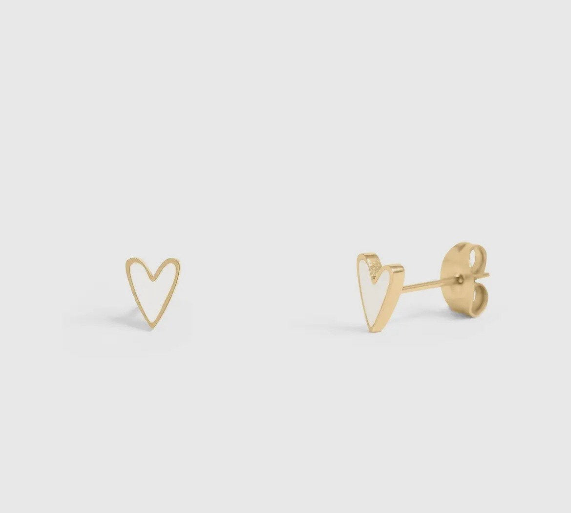 The Cameron - 18K Gold Plated Dainty White Heart Stud Earrings